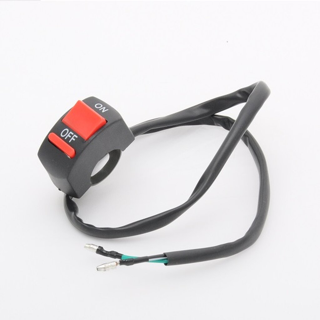 Universal Killschalter für die Verwendung am Motorrad, Roller, Quad oder anderen Kraftfahrzeugen. Der Killschalter wird inkl. Kabel und zwei Steckern geliefert. Im Gegensatz zum Killschalter als Druckknopf kann man das Motorrad erst wieder starten wenn der Schalter wieder auf "ON" gestellt wurde.