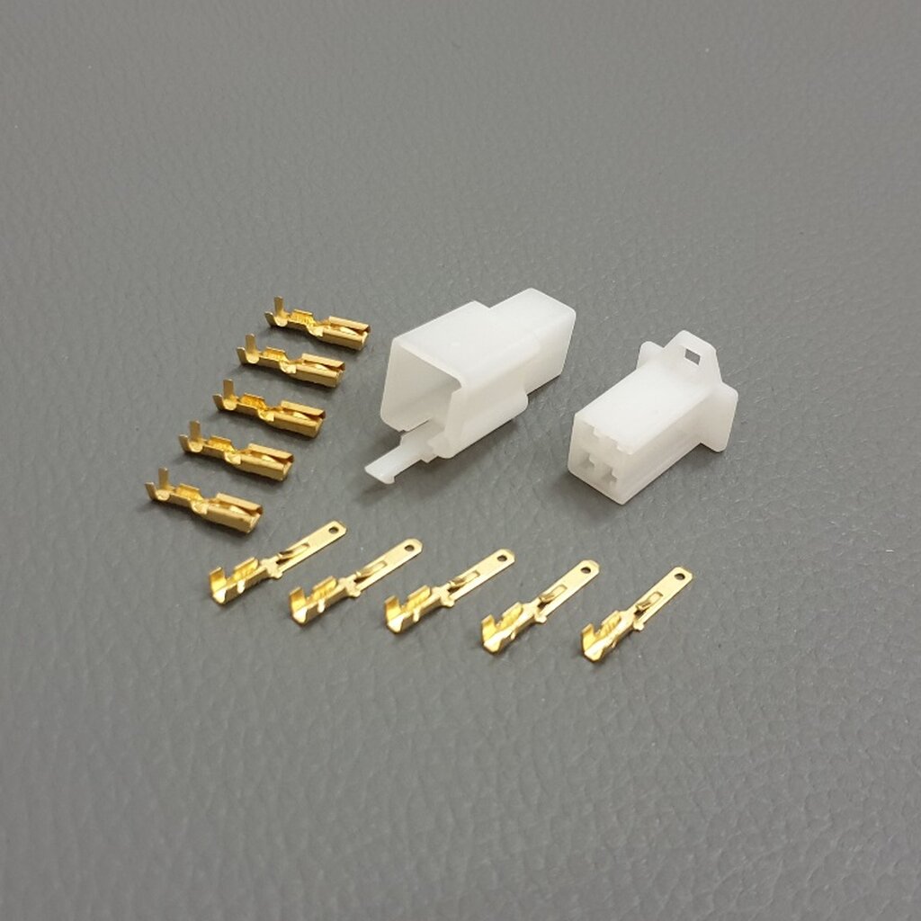 Wir bieten euch hier ein universelles Stecker Set für die Montage am Kabelbaum an. Das Set besteht aus zwei Steckergehäusen und den dazugehörgen Kabelschuhen zum aufcrimmen auf den Kabelbaum. Wir liefern von beiden Kabelschuh Modellen je einen mehr.